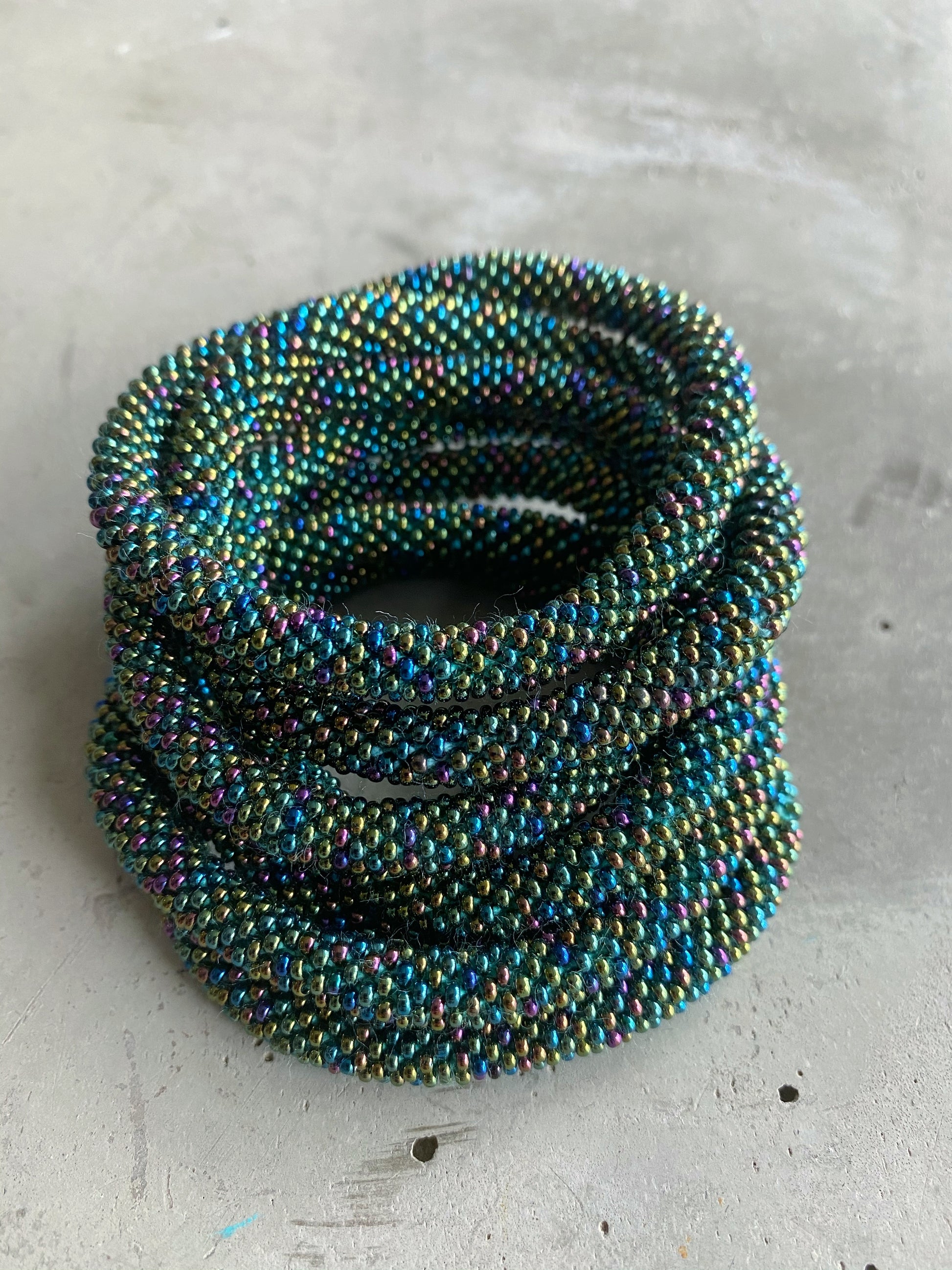 Håndlavet glasperle rollon armbånd fra Nepal.